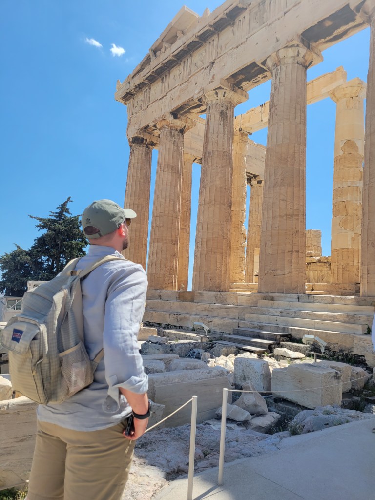 When it comes to climbing the Acropolis I have three pieces of advice, bring water, cover up from the sun as best you can (a wide-brimmed hat is perfect here), and expect your white shoes to turn a lovely shade of beige by the time you’re done. In all seriousness, it may seem like a steep climb if you’re not used to doing much physical movement in your daily life, so take your time and stay comfortable. Being among the ruins of the Parthenon is surreal, and the view from the top of the Acropolis is incredible.